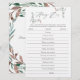 Tarjetas de juego de tareas para ducha de novia de invierno con hojas de acuarela diseñadas para ser personalizadas rápida y fácilmente.