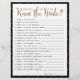 Sencillo diseño en blanco y negro con lunares dorados, Juego de Cuestionario "¿Cuánto conoces a la novia?", juego de lista de verificación. El color de fondo es personalizable.