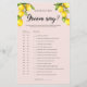 Lámina Juego de la ducha nupcial de limón Lo que dijo el