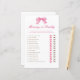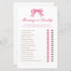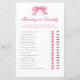 Tarjetas de juego de mami o papi de color rosado de Baby Shower Bow