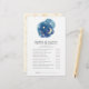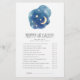 Este juego de luna y estrellas neutro de género "mamá o papá" es perfecto para una simple ducha de bebé. El diseño moderno y caprichoso presenta una forma de nubes acuarela azul marino con una luna de barrio amarilla y estrellas. Personalice la parte posterior de la tarjeta con el nombre de la futura madre y la fecha de la ducha. Puede personalizar las preguntas del juego haciendo clic en el botón "personalizar".