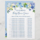 Hortensia azul floral - Juego de nombres de bebés famosos - Folleto del juego para baby shower.