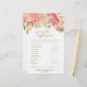 Este juego de flores de melocotón y peonía rosada "baby word scramble" y "adivinen el precio correcto" es perfecto para una elegante ducha de bebé chicas. En la parte delantera de la tarjeta de juego se muestra "baby word scramble" y en la parte trasera se muestra "adivinar el precio correcto". El diseño floral presenta un hermoso arreglo de peonías acuáticas en tonos de rubor y coral a juego con una delgada caligrafía de Relieve metalizado de oro de imitación. Puede personalizar las preguntas del juego haciendo clic en el botón "personalizar". CLAVE DE RESPUESTA DE BABY SCRAMBLE: 1.Diaper 2.Bassinet 3.Bottle 4.Crib 5.Pacifier 6.Changing Table 7.Stuffed Animal 8.Stroller 9.Rubber Duck 10.Blanket 11.Tether 12.Formula 13.High Chair 14.Mobile 15.Thermometer Nota: Este diseño no presenta oro real Relieve metalizado. Es un gráfico de alta calidad hecho para parecer un Relieve metalizado dorado.