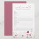 Mantenga a los invitados entretenidos con el Juego de Palabras Revueltas de Flores Silvestres Pink Baby In Bloom, un complemento lindo y atractivo para su baby shower de baby in bloom. Con tonos rosa suave y flores silvestres delicadas, este juego de baby shower combina diversión y elegancia, lo que lo hace perfecto para cualquier celebración inspirada en flores o jardines. Fácil de jugar y bellamente diseñado, este juego de palabras revueltas es una excelente manera de romper el hielo y agregar energía alegre a sus festividades de baby shower.