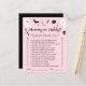 ¡Añade un giro aterrador a tu celebración con nuestro juego de papá o mamá de Baby Shower de Halloween rosado! Perfecto para un juego de halloween con una ducha para bebés, esta diversión se adapta perfectamente a cualquier ducha de halloween. Disfrute de la decoración de Halloween rosa con el tema de la ducha para bebés o de la decoración de Halloween con un toque de alegría. ¿Buscando ideas para una ducha de bebé en Halloween? ¡Este juego es imprescindible para el chica de ideas de ducha de bebé con temática de halloween! Celebremos que un poco de boo se debe casi a este juego encantador, un momento destacado de tus ideas de un pequeño boo de ducha de bebé. Perfecto para un bebé es preparar ideas de ducha para bebés halloween, seguro que será un éxito entre sus invitados. Explore más cosas que preparen ideas para una ducha de bebé en halloween y ideas para una ducha de bebé en halloween para hacer su evento inolvidable. ¡No te pierdas de vista este bebé está preparando ideas para la ducha de bebé!
