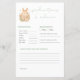 Este diseño de baby shower presenta un pequeño conejito sonriente envuelto en una textura suave de punto, rodeado de flores delicadas. La ilustración de acuarela utiliza flores pastel y vegetación sutil, lo que da al diseño una apariencia suave adecuada para baby showers de primavera y Pascua.