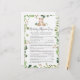 La tarjeta de juego Rhyme de bebés con temática de ducha de oso incluye un ilustracion de oso acuarela y una zona verde de agua con eucalipto y un elegante tipo de letra manuscrita.