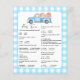 Lámina Juego de preguntas para baby shower - Coche con ca