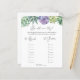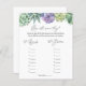 Tarjeta de juego para despedida de soltera con suculentas verdes y moradas en acuarela. Una forma divertida de interactuar con los invitados para adivinar la edad de la novia y el novio en las fotos. Agrega un código QR para mostrarles las fotos.