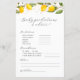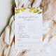 Tarjeta de juego de shower de predicciones y consejos de limón amarillo jugoso. Con este diseño brillante de acuarela, esta colección de shower de bebé es la forma perfecta de celebrar el nacimiento de tu nuevo bebé.