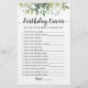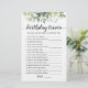 Compra este juego de vegetación editable y disfruta de una Trivia de Cumpleaños de alta calidad ¡Qué bien conoces tu tarjeta para tu evento! Esta es una plantilla de juego, ¡Puedes cambiar las preguntas como quieras! El diseño de las hojas de color agua verde.