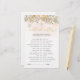 El diseño del juego de duchas de novias es una impresionante mezcla de elegancia y encanto bohemio. Los tonos suaves, blancos y dorados, combinados con las acuarelas florales, crean un ambiente romántico y caprichoso, perfecto para una ducha de matrimonio de inspiración bohú. Los detalles intrincados de los rosas y los motivos florales en el diseño dan una sensación de lujo y sofisticación, mientras que los acentos bohemios le dan un toque de espíritu libre y creatividad. El conjunto del diseño es encantador y de ensueño, lo que lo convierte en una gran elección para un evento de temática bohemia. Tanto si es un fiesta al aire libre como si se trata de una reunión interior acogedora, el Bridal Shower Game está diseñado para realzar la belleza y el ambiente. Para una personalización más avanzada de este diseño, simplemente seleccione el botón "Personalizar It" de arriba. Los elementos coincidentes están disponibles.