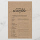Este juego rústico de caligrafía de "mamá o papá" con estilo kraft falso es perfecto para una fiesta de bebé campestre. La parte frontal de la tarjeta del juego presenta "¿mamá o papá?", y la parte trasera presenta "palabras de bebé desordenadas". El diseño minimalista cuenta con una fuente moderna encantadora y un corazón sobre un fondo de kraft falso. Personalice la parte frontal de la tarjeta con el nombre de la futura mamá y la fecha de la fiesta de bebé. Puede personalizar las preguntas del juego haciendo clic en el botón "personalizar".