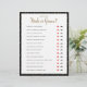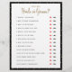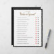 Sencillo diseño en blanco y negro con lunares dorados, juego de cuestionario "Adivina Quién" con labios rojos o bigote negro para marcar la respuesta. ¡Asegúrate de preguntarle a la novia y al novio las preguntas de antemano! El color de fondo es personalizable.