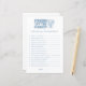 Agrega diversión a tu despedida de soltera con tema azul con este encantador juego Fresh Off The Market, Who Knows The Bride Best. Los invitados disfrutarán probando cuánto conocen a la futura novia con esta actividad divertida e interactiva, perfecta para la celebración de la despedida de soltera. Estas tarjetas de juego son parte de una colección de despedida de soltera con artículos coordinados disponibles. Te animamos a explorar el conjunto completo para crear una celebración perfectamente a juego.