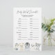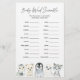 La tarjeta de juego con temática de los animales del Ártico para la ducha de bebé palabra scramble cuenta con una acuarela de color ilustracion de animales de invierno y vegetación acuática de eucalipto y elegante fuente de estilo manuscrito.