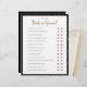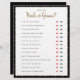 Diseño simple en blanco y negro con lunares dorados, juego de cuestionario "Adivina quién" con labios rojos o bigote negro para rodear la respuesta. Asegúrate de hacerle las preguntas a la novia y el novio de antemano. El color de fondo es personalizable.
