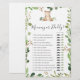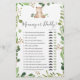 La tarjeta de juego de papi o mami con temática de oso incluye un ilustracion de ciervo acuarela y una zona verde de agua con eucalipto y un elegante tipo de letra manuscrita.