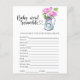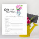 ¡Celebra con esta jarra de flores de color acuático! ¡Bebé en flor! ¡fiesta de ducha para bebés! RESPUESTAS: REVUELTAS, LLORACIÓN, PACIFICADOR, BOTELLA, LUZ NOCTURNA, LULLABY, ESPÍRITU, EPIDURAL, BURP, SILLA ALTA, BOLSA DE DIAPER, ESPADA