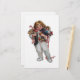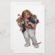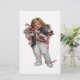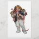 Una ilustración vintage de un niño pequeño sosteniendo un montón de regalos.