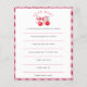 Añada un toque dulce a su ducha de bebé con la temática del cerezo con esta tarjeta de actividad "Querido Bebé". Los huéspedes pueden llenar de esperanzas y predicciones sentidas para el más pequeño, creando un aguijón que los padres apreciarán para siempre. Diseñado con cerezas, arcos y un borde de gingham rosa, este juego se adapta perfectamente a la decoración de la ducha de bebé.