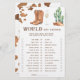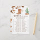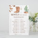 Este diseño presenta colores neutros modernos en una aplicación acuarela. Diseño en estampado de vacas, vaso de champán, cactus del desierto, botas de vaquero.