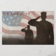 Honra a los caídos con el último saludo. En honor a nuestros caídos de las fuerzas armadas. Saludando a los soldados con la bandera estadounidense en el fondo.