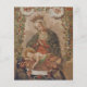 Esta bella pintura está basada en La Virgen Adorando al Niño Cristo con dos Santos (La Virgen adorando al Niño Jesús con dos santos) de un artista no identificado. Imagen original de dominio público del Museo de Arte del Condado de Los Ángeles. La obra de arte muestra una Virgen María coronada, con una expresión serena y manos apretadas en oración. Ella está vestida con túnicas ricas con patrones intrincados, rodeada de radiantes líneas doradas. Debajo de ella descansa un bebé Jesús dormido, rodeado de una manta con diseños detallados. Dos hombres sagrados están colocados debajo, el corazón sagrado entre ellos. El fondo está lleno de motivos florales y de cantos de flores en las nubes.