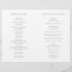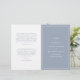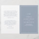 Programa simple de bodas plegadas con un diseño moderno y elegante con su monograma inicial y sus detalles rodeados por un delgado borde en la portada. El interior tiene tu fiesta de boda en el lado izquierdo y tu orden de ceremonia en el lado derecho. Todos los elementos de diseño están en azul y blanco polvoriento y pueden cambiarse en la herramienta de edición de diseño. Una moda y un diseño de diseño, ideal para una pareja minimalista. Estos baratos programas de bodas están impresos en hojas de papel para una excelente opción económica.