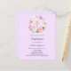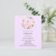 A lavender colored background, decorated with watercolored pink and white flowers in a wreath and a golden cross. Personalize and add a name and details.