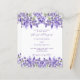 Fondo blanco decorado con flores de lavanda. Personalice y sus nombres y detalles. Atrás: agregue la URL de su sitio web boda al código QR para obtener más detalles y/o RSVP. 1 hoja = 1 borde impreso de invitación de boda al borde.