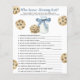 ¡Hay Una Pequeña Cookie En Camino! Fiesta de ducha de bebé color agua. Galletas de color de agua con chocolate y leche de botella con arco azul.