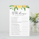 ¿Quién conoce mejor a la novia? Añade esta divertida y divertida tarjeta de juego de ducha de novia a tu evento. Cuenta con limón acuático, naranjas, vegetación y aliento para el bebé. Personalice este juego de ducha de novia cítricos añadiendo sus propias preguntas. Este juego de ducha con limón de novia es perfecto para las duchas de verano.