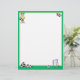 Este lindo membrete tiene un borde verde con un futbolista, un gol y muchas pelotas de fútbol.