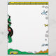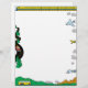 Este membrete de transporte incluye un tren para la frontera superior, aviones para la frontera derecha, una escena de autobús amarillo para la frontera inferior y autos que viajan por una sinuosa carretera para la frontera izquierda.