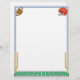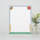 Este membrete tiene casco de fútbol y fútbol en las esquinas superiores y un campo de fútbol y puestos de objetivos en la frontera inferior.