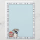 El membrete azul tiene el hueso de perro y el borde de la huella de la pata con un perro tierno e hidrante de fuego.