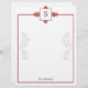 Navidades Letterhead es perfecta para su uso personal. El fondo es un blanco brillante con dos diseños florales plateados en ambos lados. En la parte superior hay un patrón de damasco rojo que crea un cuadrado perfecto para sus iniciales. En la parte inferior puede agregar su nombre completo. Navidades Letterhead es una maravillosa manera de mantenerse en contacto con sus socios o clientes de negocios durante las vacaciones. Estas son las dimensiones perfectas para tu impresora para todas tus cartas de vacaciones.