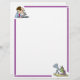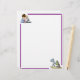 Este gracioso membrete presenta a un científico mirando a través de un microscopio a un insecto en la esquina superior izquierda, y un insecto mirando a través de un telescopio al científico en la esquina inferior derecha.
