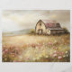 Este encantador cuadro representa un rústico granero blanco enclavado en un campo de flores silvestres vibrantes, que evoca un ambiente campestre tranquilo. Las suaves pinceladas y los tonos cálidos crean un ambiente nostálgico de granja perfecto para una decoración rústica y campestre.