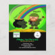 Invitación a la fiesta del Día de San Patricio en hojas de papel de calidad. Con un leprechaun, una olla de oro, un arco iris, un calendario con el 17 de marzo y un reloj de pared con el tiempo. Está acondicionada con un bar y una parrilla, aunque es personalizar para un fiesta familiar. Todo se puede personalizar y personalizar a partir de esta invitación.