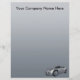 Foto de un elegante auto deportivo plateado con un fondo moderno. Este membrete viene en varias versiones con diferentes colores y coches. Esto también se puede usar para concesionarios de automóviles o talleres de reparación de automóviles. El texto es completamente personalizable. com com com com com com
