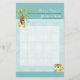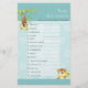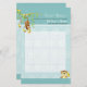 Esta hoja de juego para Baby Shower de Niño tiene tanto Bingo como Palabras Desordenadas de Bebé. Fácil de jugar y que combina perfectamente con las invitaciones de baby shower, Consejos para la Nueva Mamá y otros regalos diseñados para hacer que tu shower sea muy especial y memorable. Este diseño presenta adorables y caprichosos monos que dan la bienvenida a tu nuevo pequeño al mundo. Hay dos monos con plátanos sobre un fondo de grandes patrones de lunares azules aqua. El reverso tiene el mismo diseño con un juego diferente. ¡Dos en uno! Hay una gran variedad de artículos disponibles para crear tu propia decoración de shower, notas de agradecimiento para bebé, stickers y más. RESPUESTAS: 1. Cochecito 2. Cuna 3. Protector de cuna 4. Pañales 5. 6. Comidas nocturnas 7. Cambiador 8. Talla