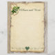 Este papel estacionario tiene un delicado aspecto rústico y rústico. El fondo se parece a una madera de granero antigua que se ha acariciado a un gris pálido suave. Sobre el fondo hay un gráfico de una hoja de papel envejecido con bordes oscurecidos rotos. Añadí un rociado de lirios del valle con dos corazones dorados abiertos. El spray vintage de lirios está dispuesto para que parezca que están pasando por el centro de los corazones. Los lirios del valle son una flor boda tradicional con aroma dulce. Puede cambiar los nombres en la parte superior. Hay una invitación a la boda en mi colección "Lily of the Valley and Two Gold Hearts".