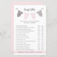 El juego de ducha de bebé chica de Pink Clothesline Adivina incluye un lindo tendedero. Puede personalizar este juego con el nombre del invitado y la fecha de ducha junto con 15 declaraciones/preguntas. Los clientes de la ducha de bebé adivinarán quién dijo cada declaración....mamá o papá.