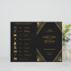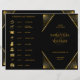 Boda plegado programa y línea de tiempo con iconos color negro y dorado patrón de diseño Art deco Perfecto para boda moderno y de moda. PERSONALIZAR ESTE ELEMENTO El color de fondo puede cambiar con la herramienta en línea de opciones de color de fondo de zazzle. Para una mirada cohesiva, visita mi tienda para ver las colecciones completas de nuestra colección de gatsby de arte deco. Material gráfico diseñado por Calani May.