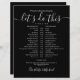 Este sencillo y elegante cronograma de bodas en blanco y negro se puede personalizar con los detalles de su boda en letras modernas. Diseñado por Thisisnotme©