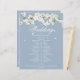 Este cronograma de bodas de flor blanca boda floral se puede personalizar con los detalles de su boda en la tipografía de moda sobre un fondo azul polvoriento. Diseñado por Thisisnotme©