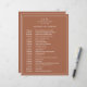 Sencillo Boda de terracota Timeline con un diseño moderno y elegante con su monograma de dos letras en la parte superior y sus detalles rodeados de un delgado borde. Todo el texto está en blanco sobre un naranja quemado / fondo de roya y puede cambiarse a cualquier color que desee haciendo clic en el botón "personalizar". Una moda y un diseño de diseño, ideal para una pareja minimalista.
