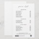 Simple lista de precios de negocios en blanco y negro con "lista de precios" en caligrafía. En la parte inferior está el nombre de la empresa, la información de contacto, los iconos de los medios sociales y el código QR. Un diseño minimalista con tipografía de moda para un toque elegante.